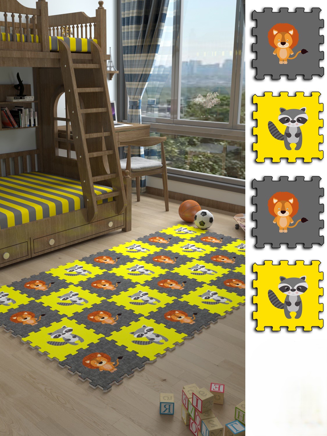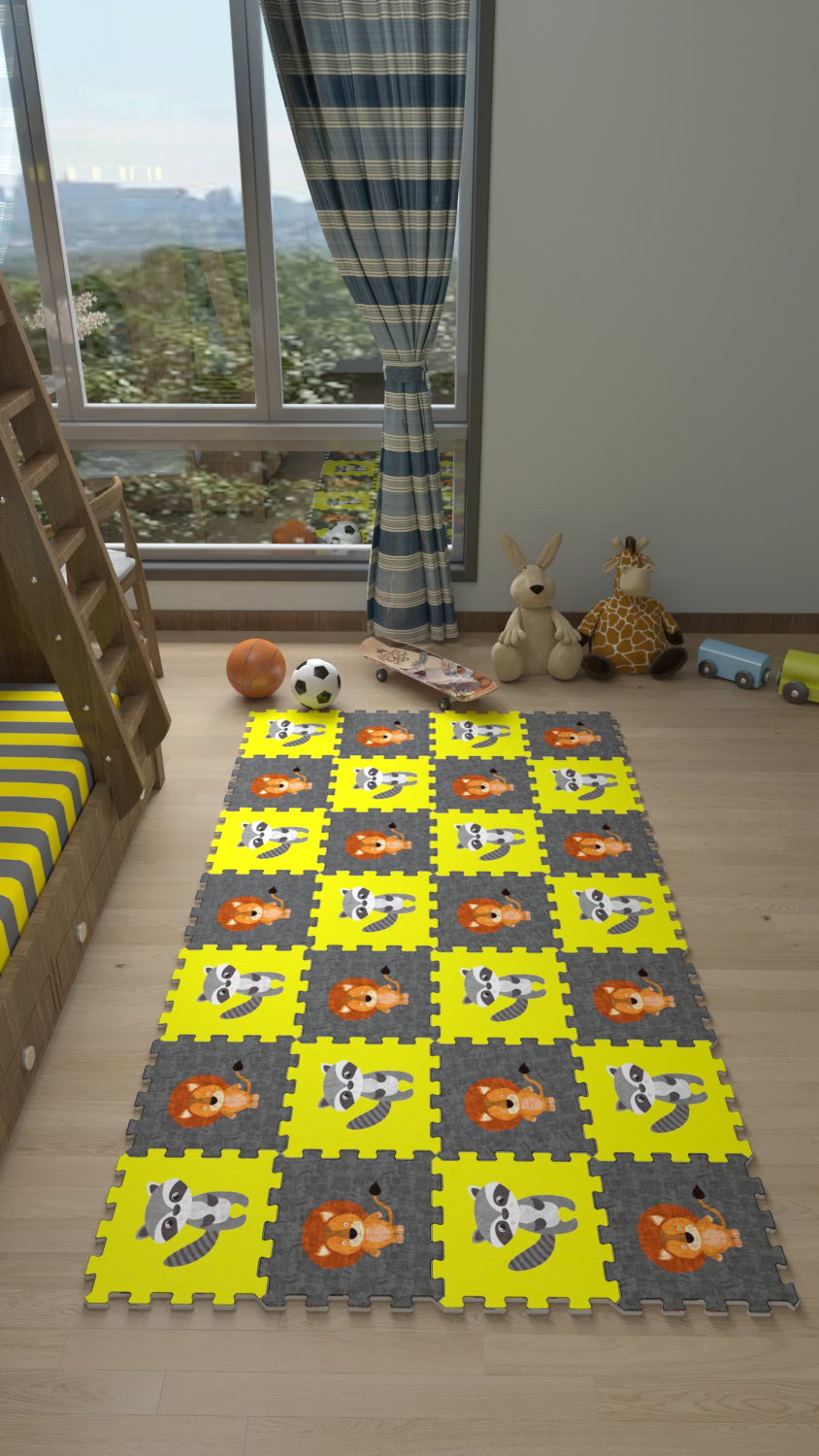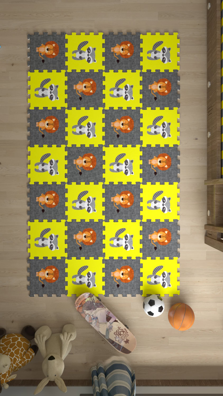 Aslan-Rakun Baskılı Kaymaz Japon Halı