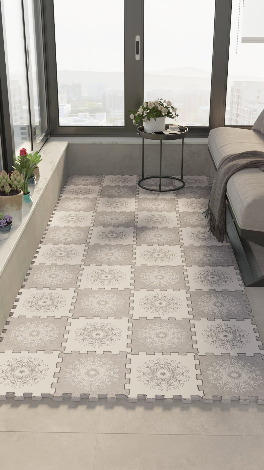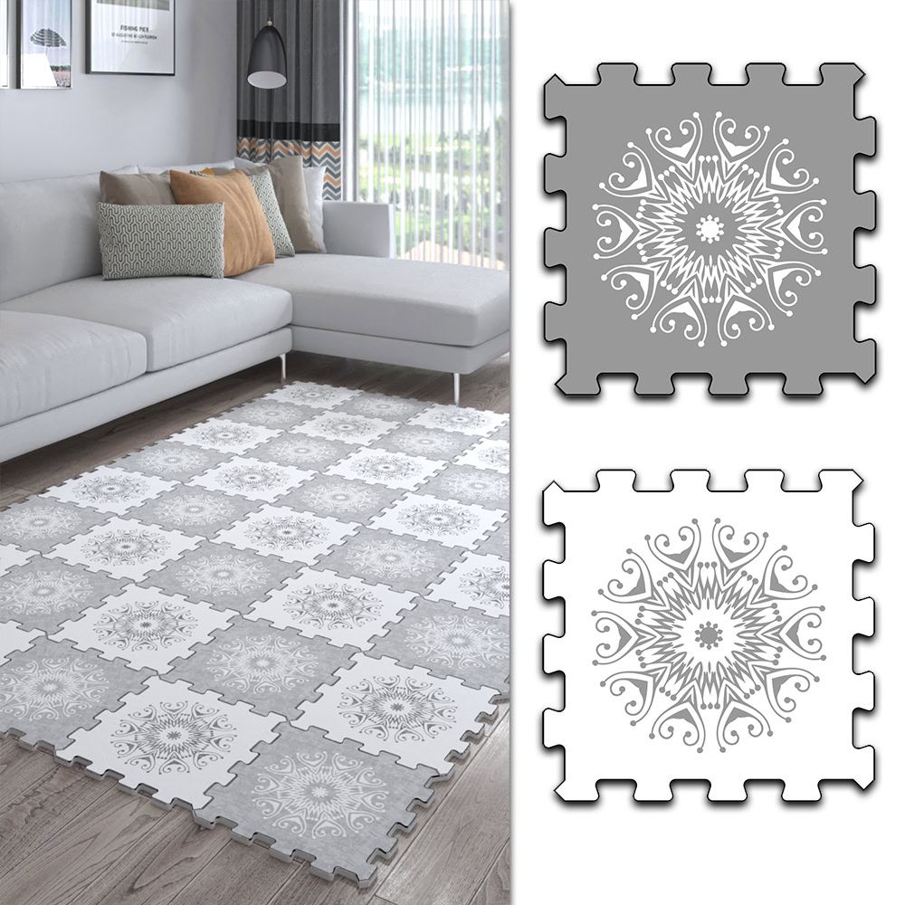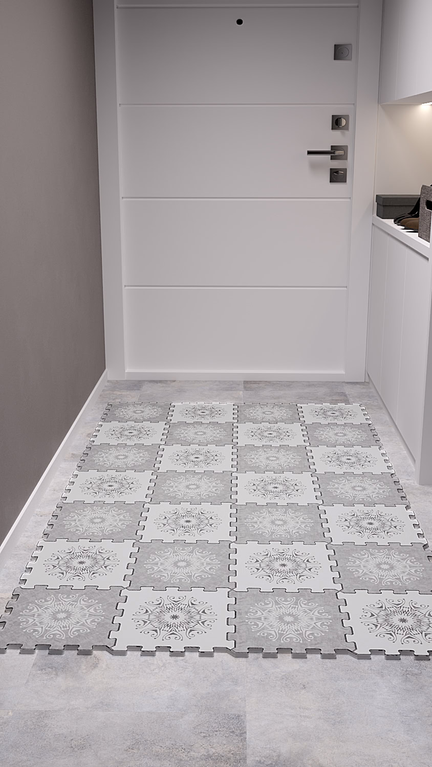 Gri Beyaz Kar Tanesi Desenli Japon Halı