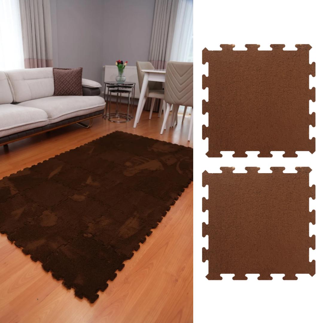 Kahve Renk Peluş Yıkanabilir Kaymaz Yapboz-Puzzle Japon Halı
