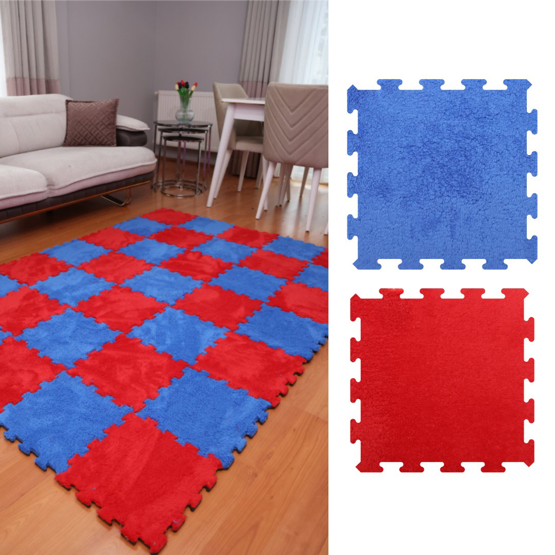 Kırmızı Mavi Peluş Yıkanabilir Yapboz-Puzzle Japon Halı