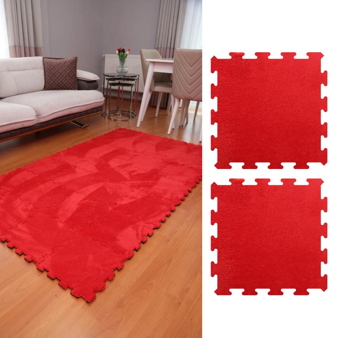 Kırmızı Peluş Yıkanabilir Kaymaz Yapboz-Puzzle Japon Halı