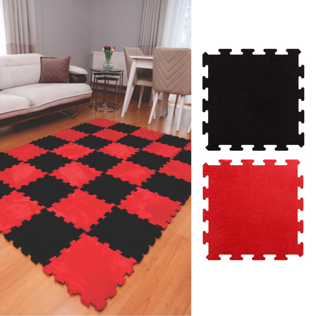Kırmızı Siyah Peluş Yıkanabilir Yapboz-Puzzle Japon Halı