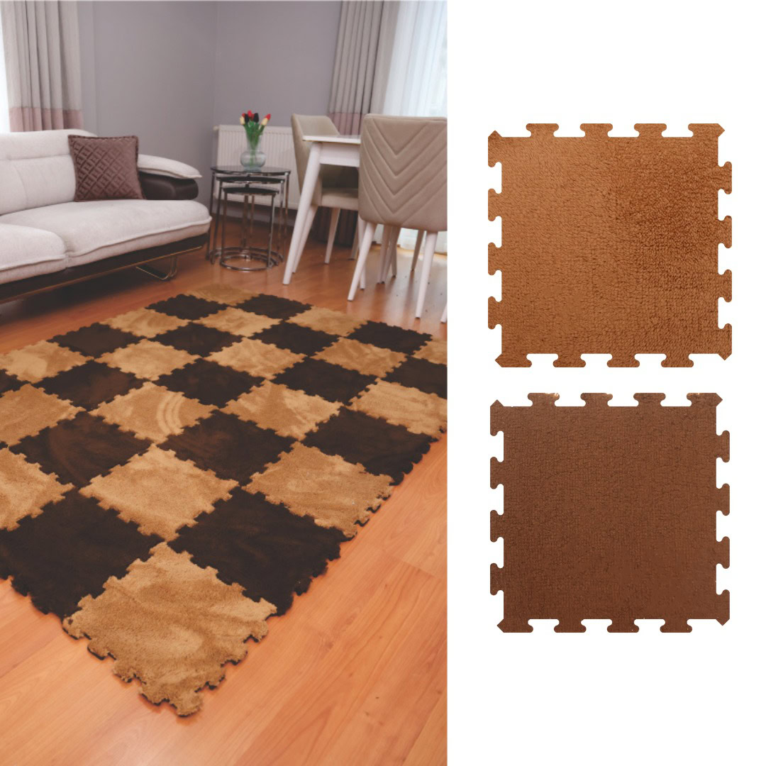 Koyu Kahve -Kahve Peluş Yıkanabilir Yapboz-Puzzle Japon Halı