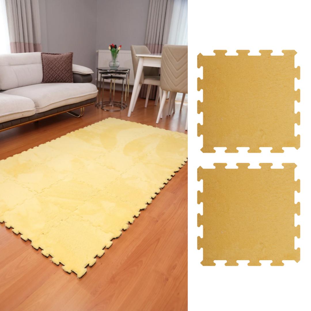 Sarı Renk Peluş Yıkanabilir Kaymaz Yapboz-Puzzle Japon Halı