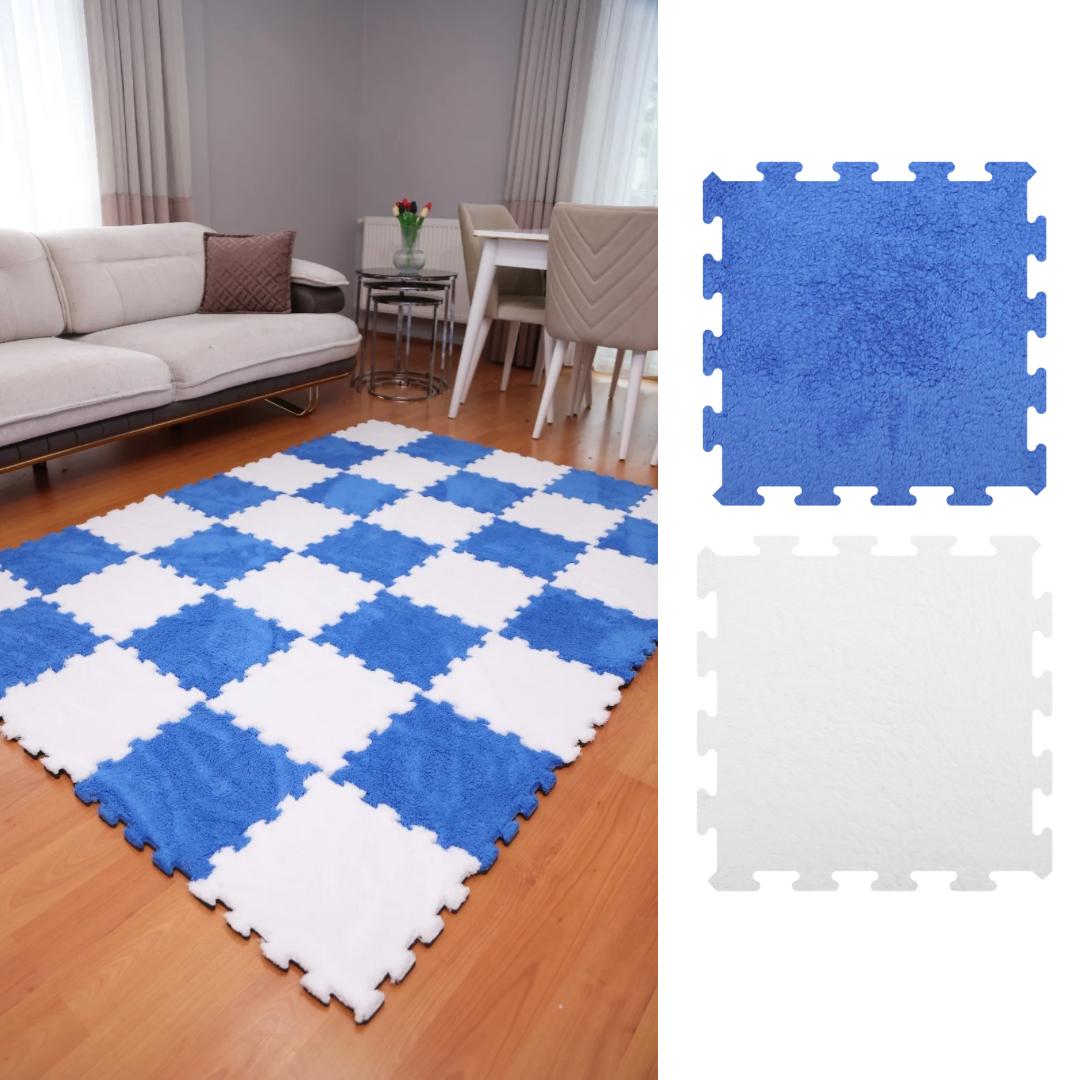 Mavi Beyaz Peluş Yıkanabilir Yapboz-Puzzle Japon Halı