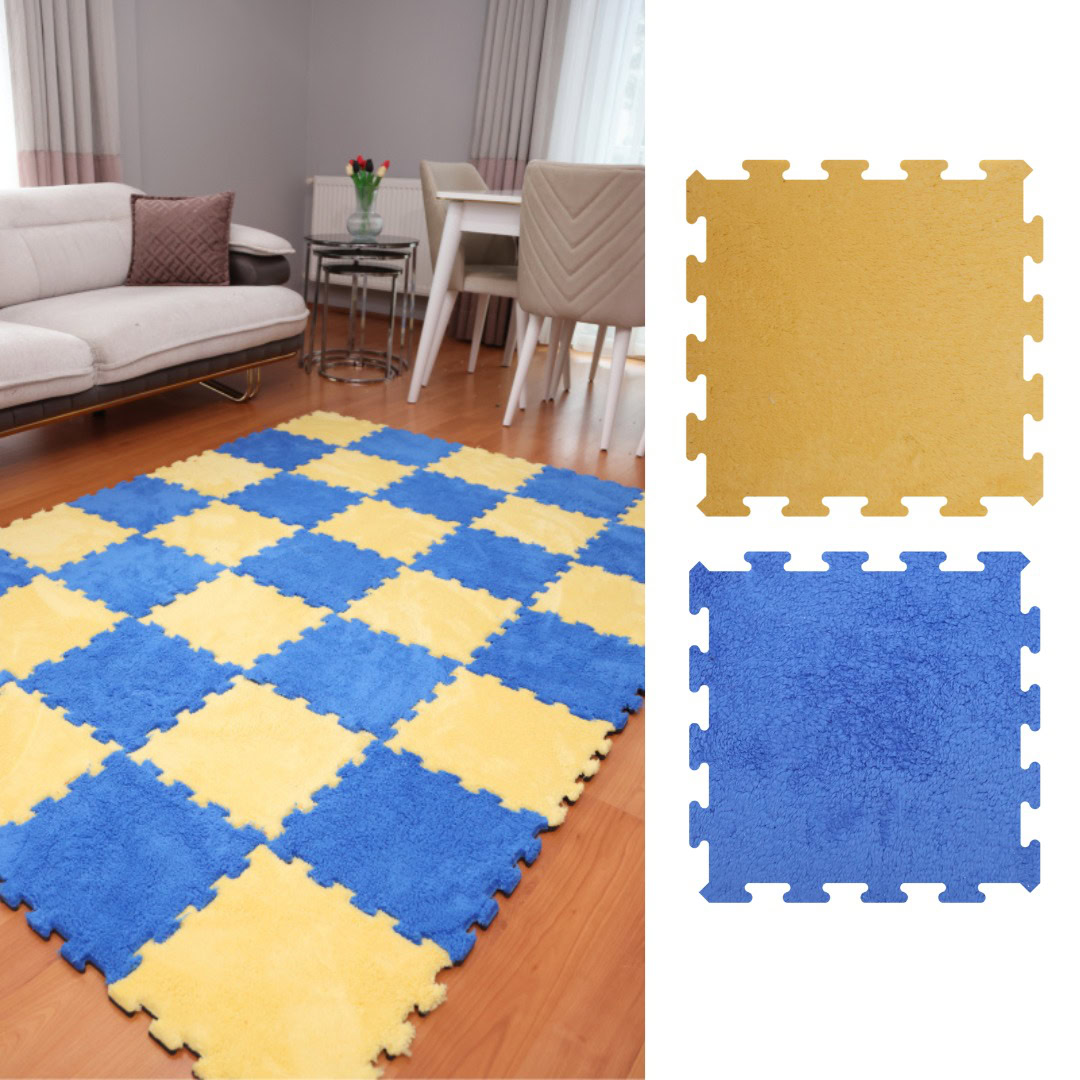 Mavi Sarı Peluş Yıkanabilir Yapboz-Puzzle Japon Halı