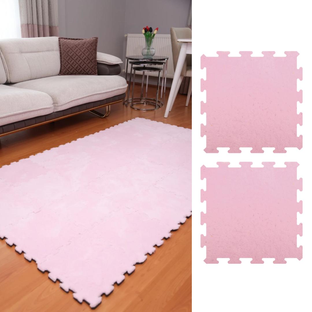 Pembe Peluş Yıkanabilir Kaymaz Yapboz-Puzzle Japon Halı