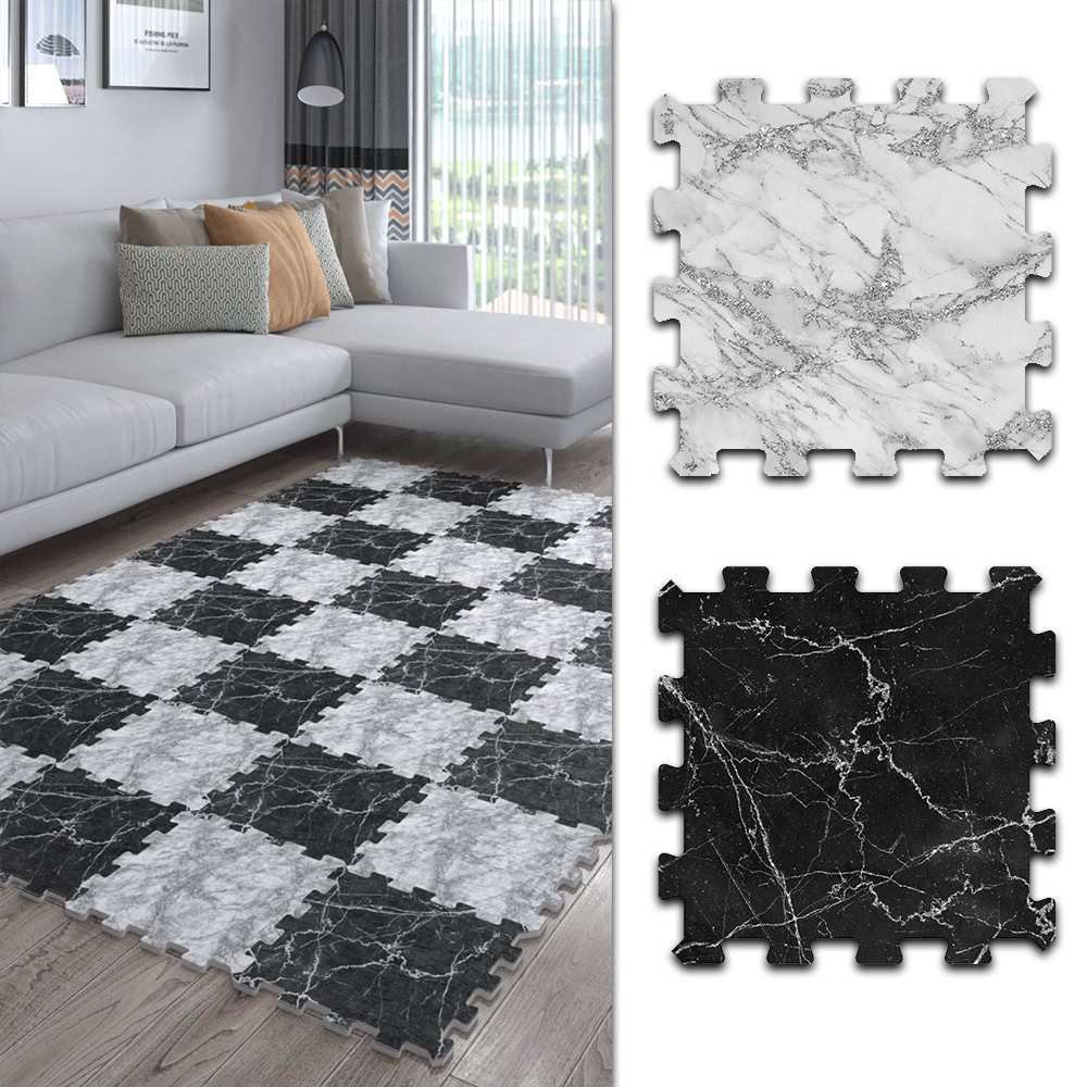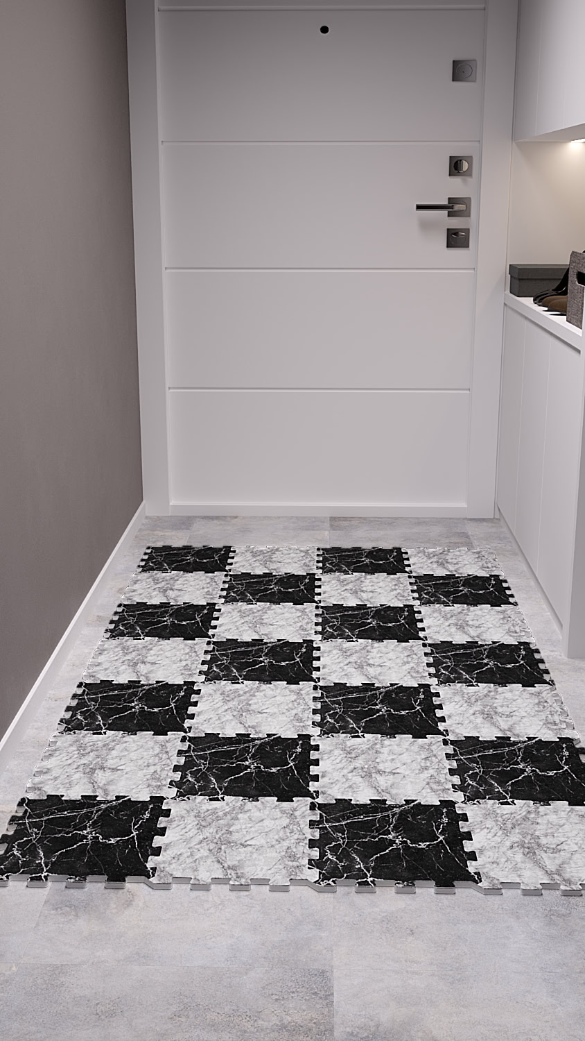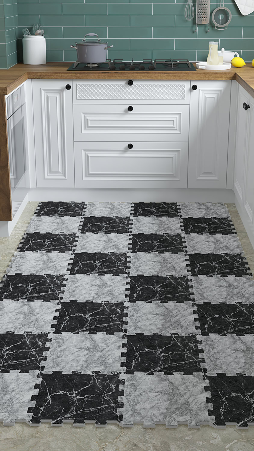 Siyah Beyaz Dijital Parke Baskılı Kaymaz Japon Halı