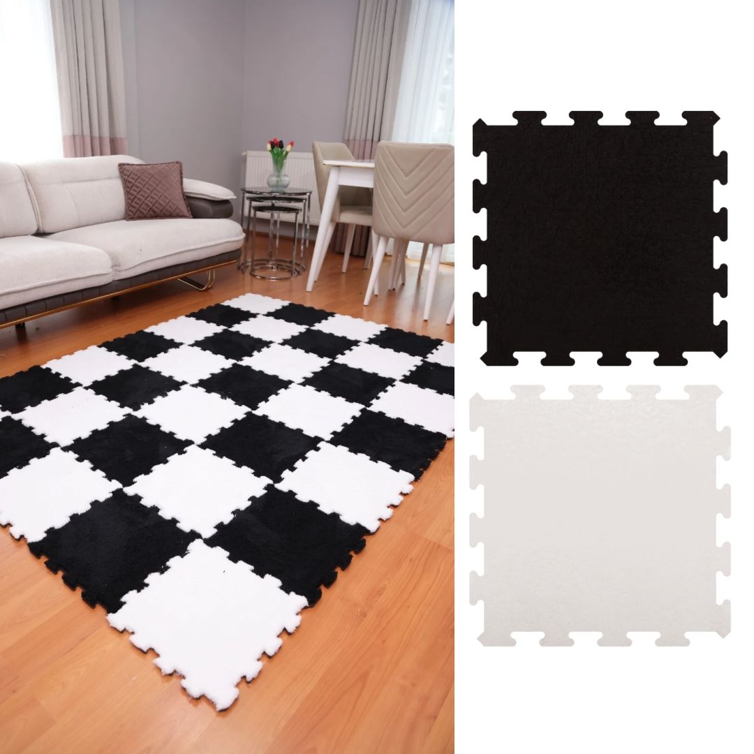 Siyah-Beyaz Peluş Yıkanabilir Yapboz-Puzzle Japon Halı