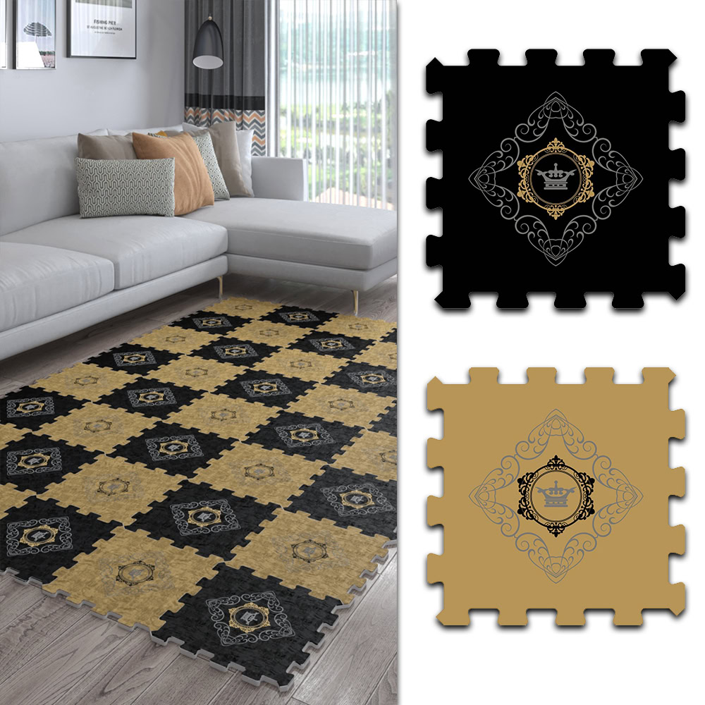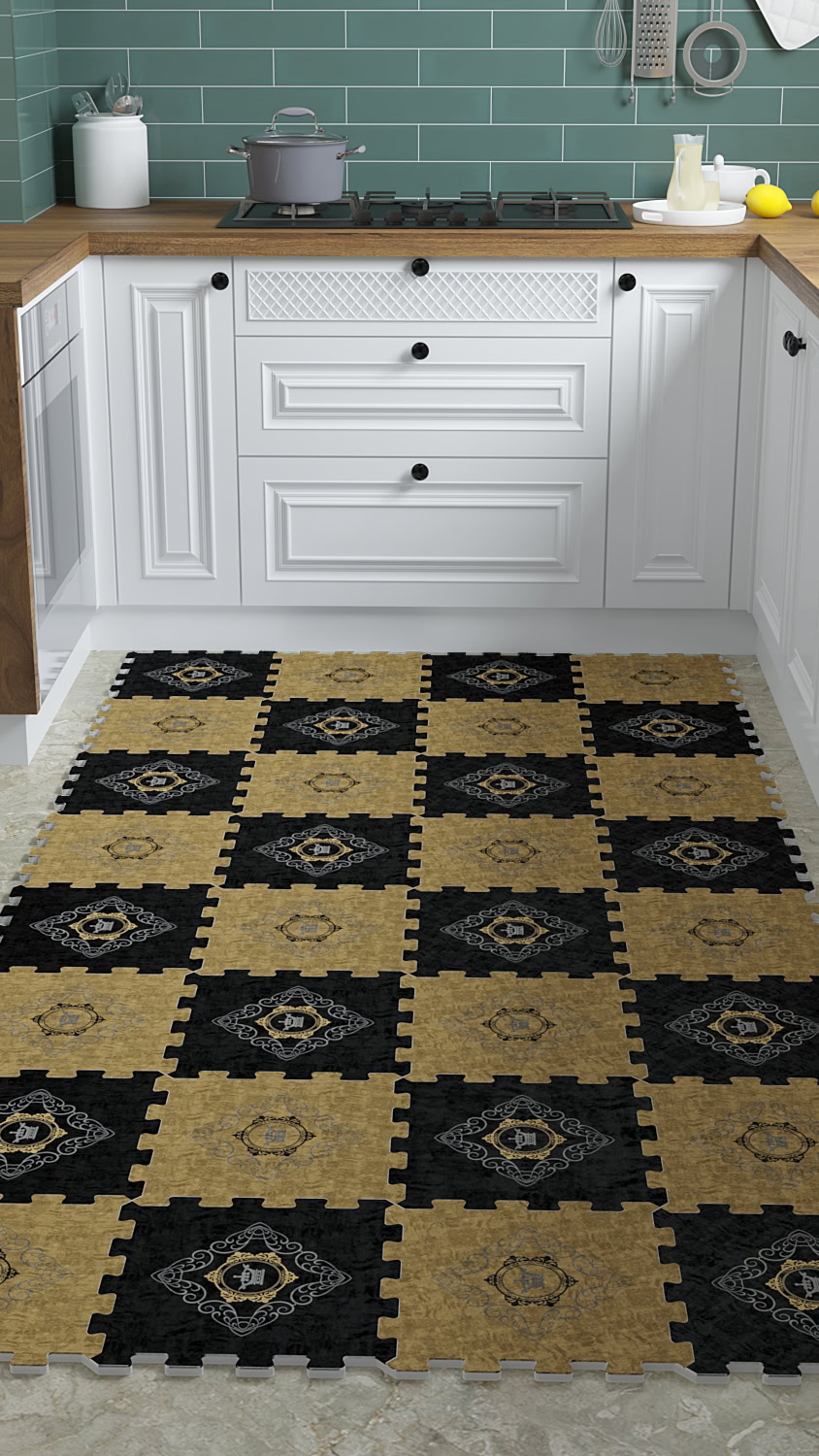Siyah Sarı Osmanlı Motif Desenli Japon Halı