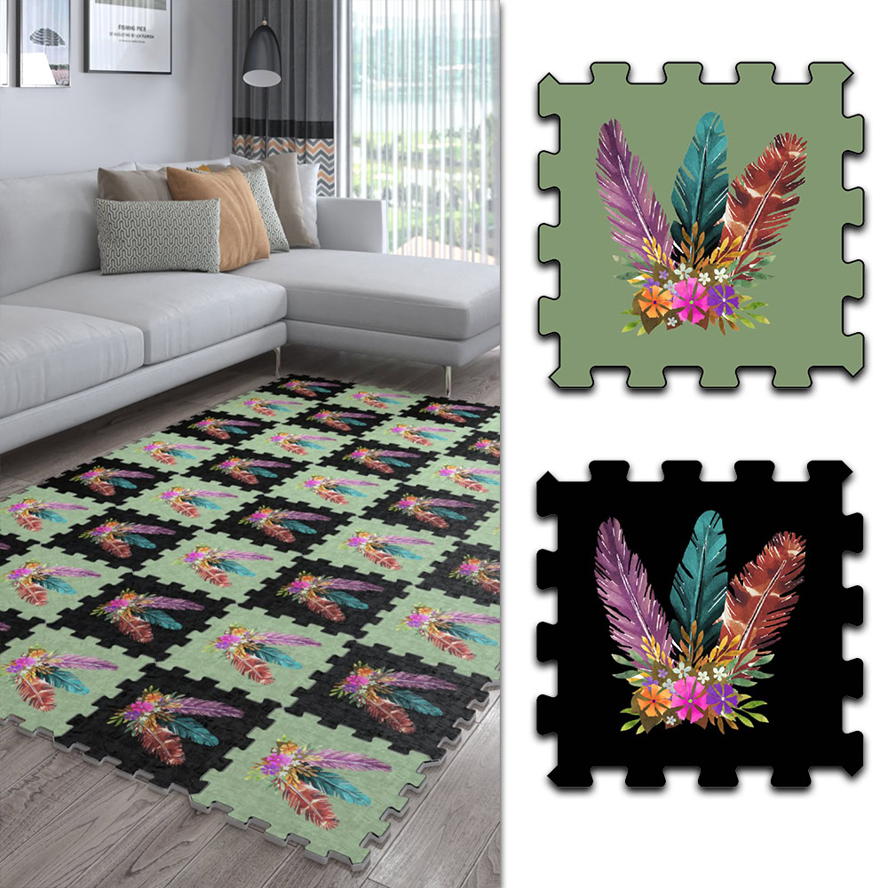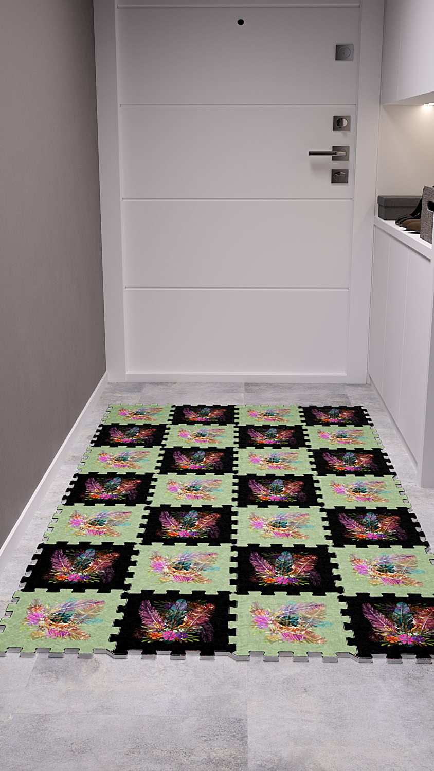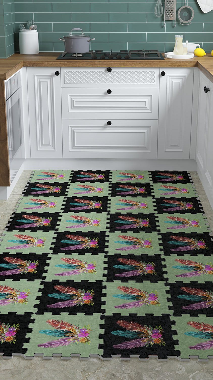 Siyah Yeşil Özel Dijital Desenli Japon Halı
