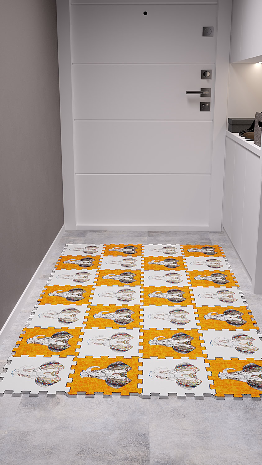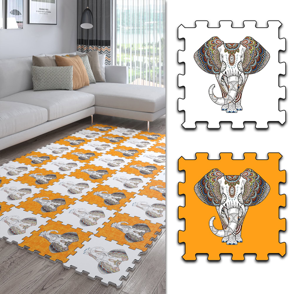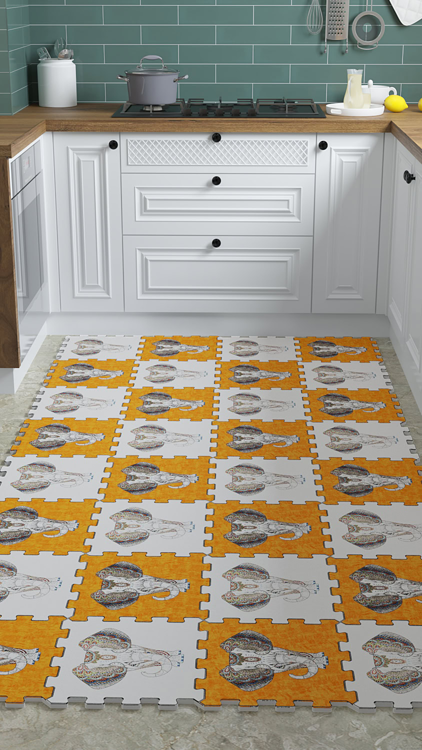 Turuncu Beyaz Fil Motif Desenli Japon Halı